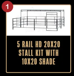 - Option 1: 5 Rail HD 20x20 Stall Kit w/ 10x20 Shade — Value $2,532